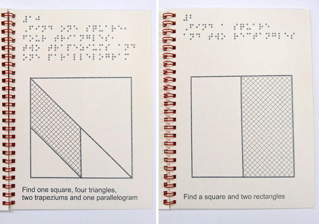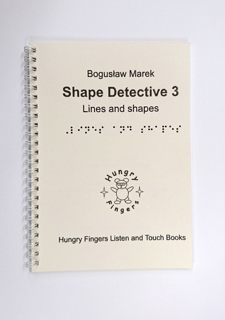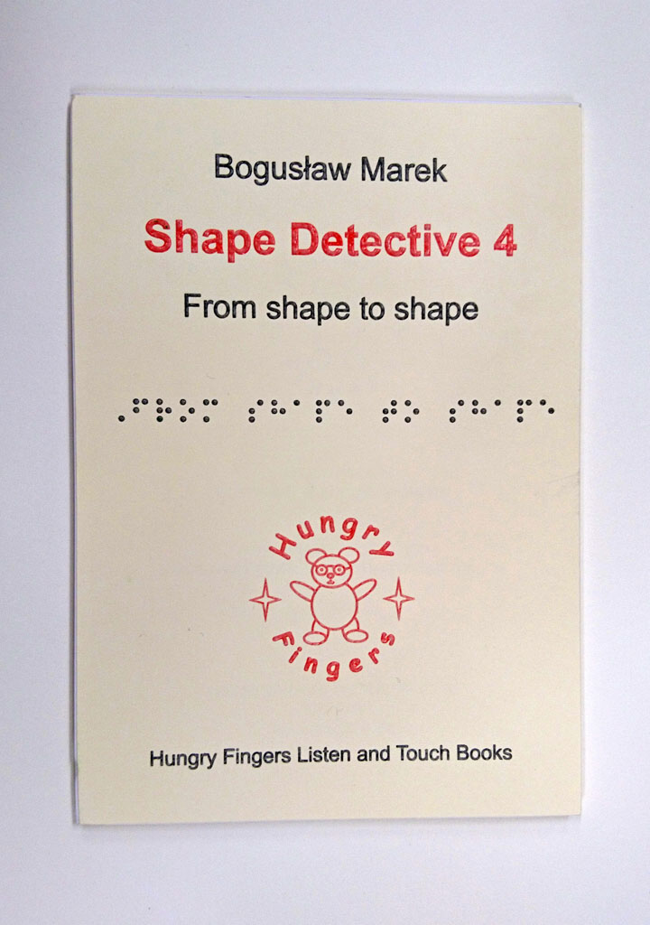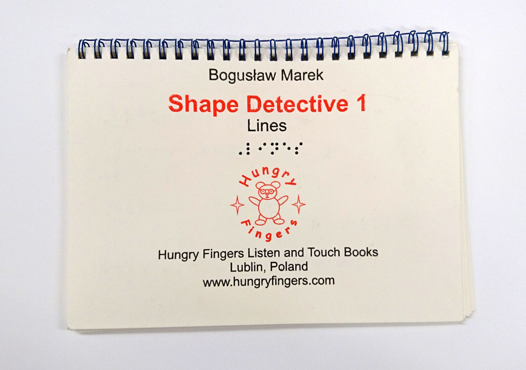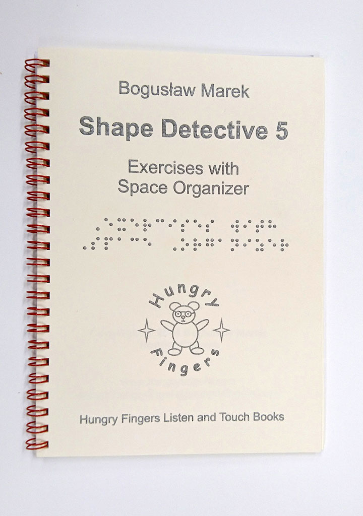 The ”Shape detective 1 - 5” series includes four booklets and one set of tactile overlays (size A5).The series takes children from drawings of lines (straight, curved, zigzags, vertical, horizontal, diagonal, parallel, solid, dashed, dotted) shown in a flip chart style activity tactile booklet Shape detective 1, to simple geometric shapes (Shape detective 2 activity book, and to combinations of lines and shapes (Shape detective 3), helping understand that simple geometric shapes are made by three or more lines. Shape detective 4 and 5 are to be used with the Space Organizer. The set of cards in Shape detective 4 alllows children to fill tactile outlines with wooden magnetic shapes, or to add or remove shapes to make new geometric shapes. Shape detective 5 is a tactile booklet with drawings of a large square made of various combinations of other shapes. The task for the child is to identify the shapes which are ”hiding” in the square. The range of activities can be expanded by using the drawings with the Space Organizer.
